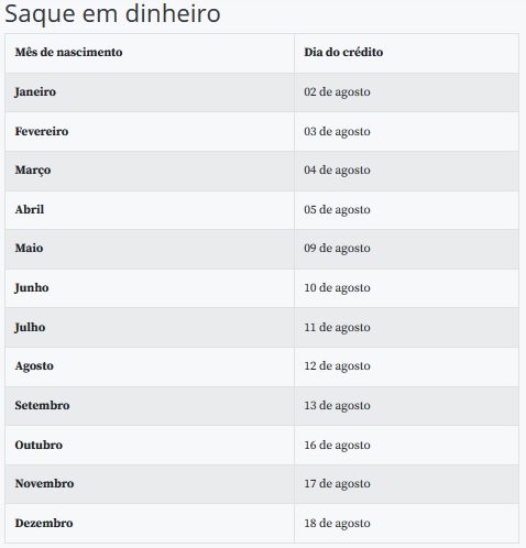 O pagamento também será feito a inscritos no Cadastro Único de Programas Sociais do Governo Federal (CadÚnico) nascidos no mesmo mês. O dinheiro será depositado nas contas poupança digitais e poderá ser movimentado pelo aplicativo Caixa Tem. Somente de duas a três semanas após o depósito, o dinheiro poderá ser sacado em espécie ou transferido para uma conta-corrente.